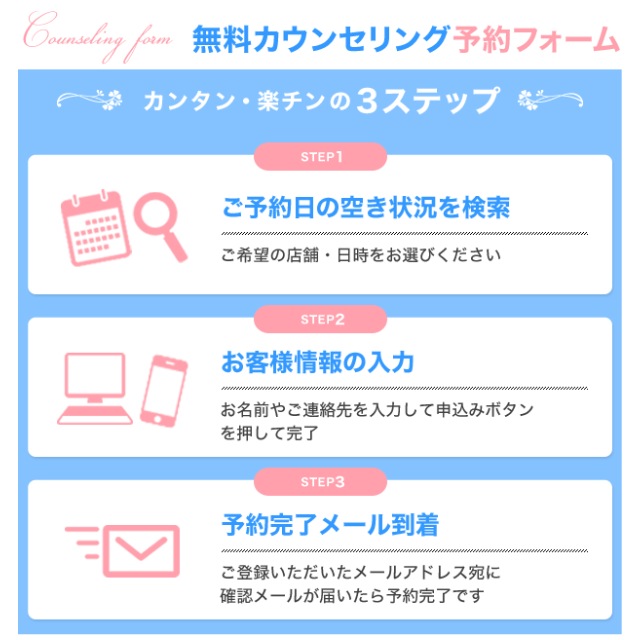 受付のお姉さんも、カウンセリングを担当してくださるお姉さんも、とても丁寧でよかったです☆